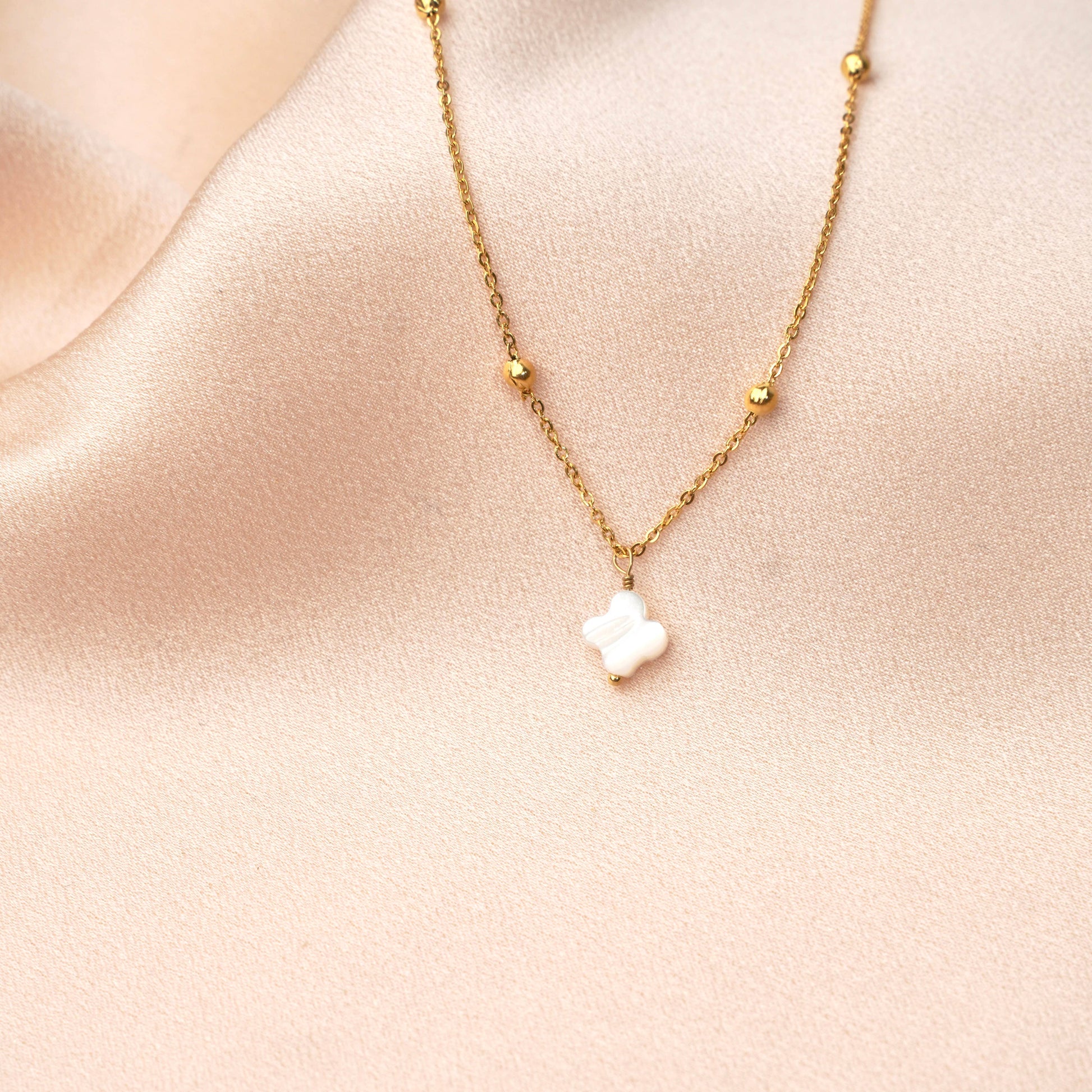 Delicate Luck – Kugelkette mit Perlmutt-Kleeblatt