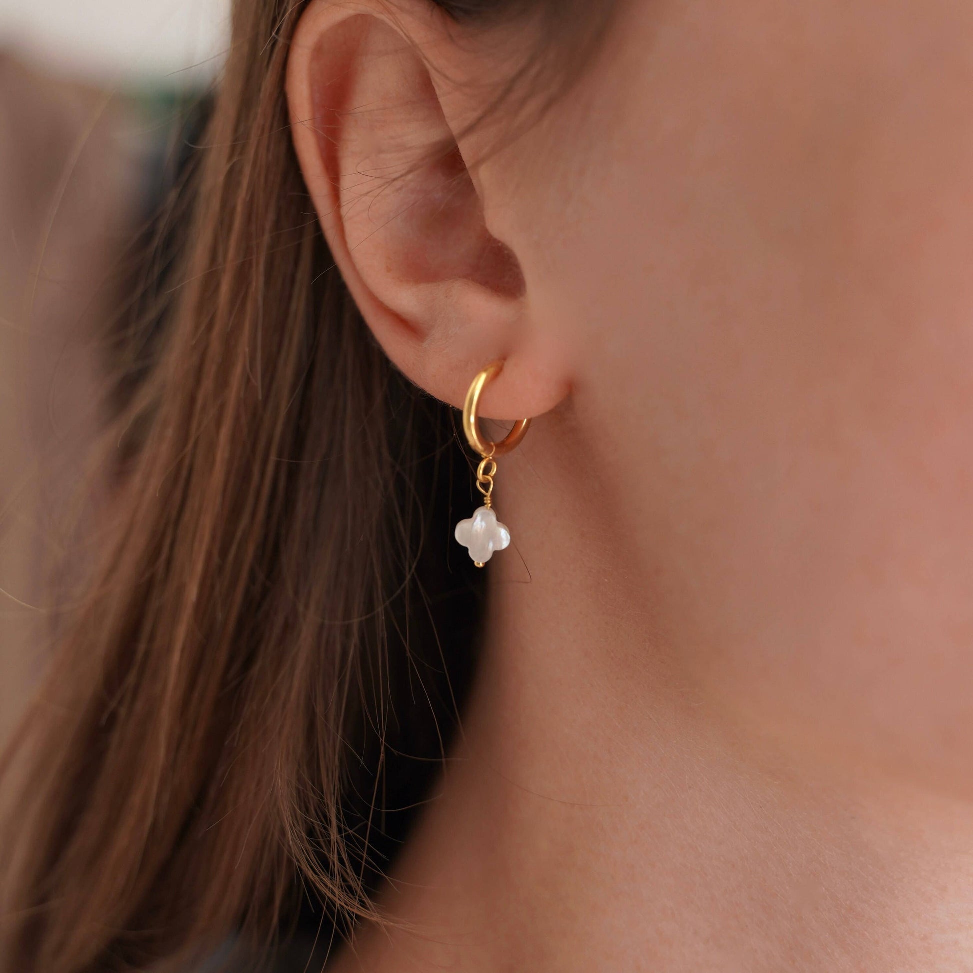 Lucky Pearl – Mini-Creolen mit Perlmutt-Kleeblatt