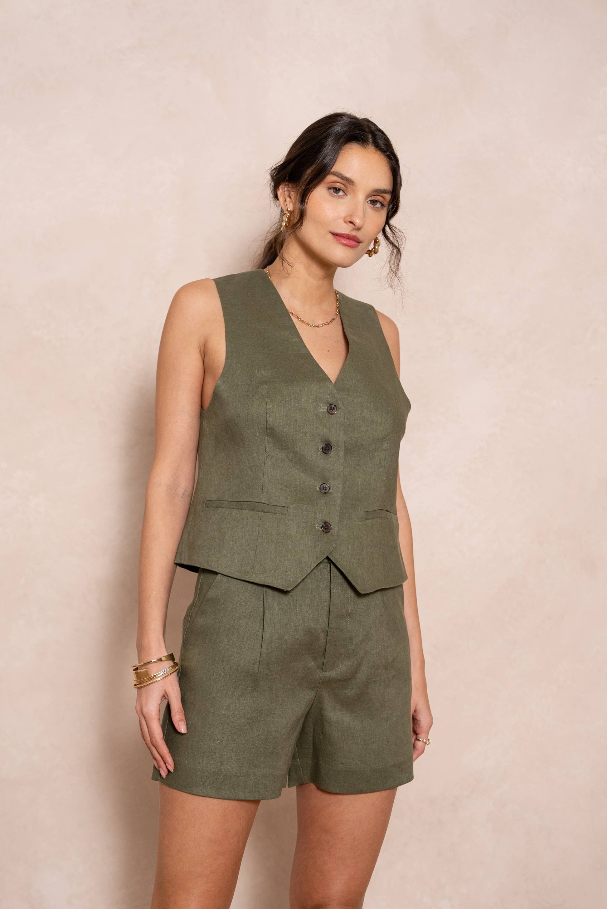 Shorts Lina bestehen aus reinem Leinen und verbinden sommerliche Leichtigkeit mit klassischem Stil.